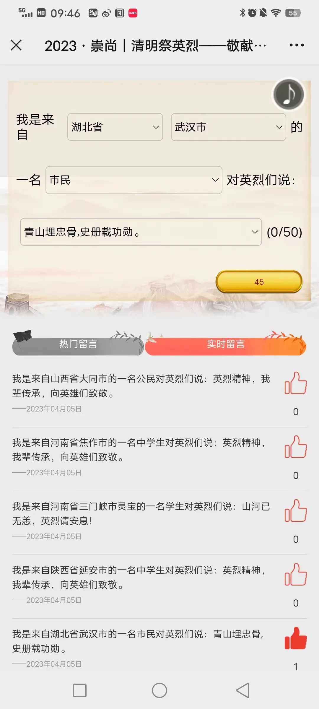 号召支部成员积极参与清明节线上线下祭英烈活动,进行团日活动的实践教育。