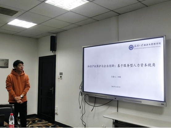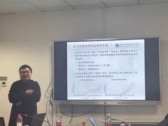 本次活动的第二项是科研经验交流环节。会议邀请了目前就职于北京大学、浙江工商大学、中南财经政法大学和对外经济贸易大学的四位优秀青年科研工作者做科研经验交流汇报。