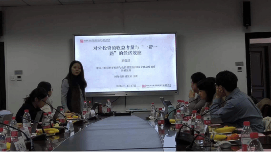下午首先由来自中国社科院世界经济与政治研究所的王碧珺副研究员做了题为“对外投资的收益考量与‘一带一路’的经济效应”的报告。报告主要研究中国海外投资项目的收益相关问题。基于中国企业海外投资的绩效差异,文章分析得出差异的主要来自于外部因素。此外,该文章以“一带一路”倡议作为准自然试验,基于双重差分法来考察中国海外投资项目的绩效变化情况。结果表明,在“一带一路”倡议提出后,以海外子公司资产收益率(ROA)为表征的中国企业对外直接投资绩效有所降低,而随着时间推移,这一绩效降低效应逐渐减小。8455新葡萄娱集团am的金融系聂禾老师对这篇文章进行了点评。