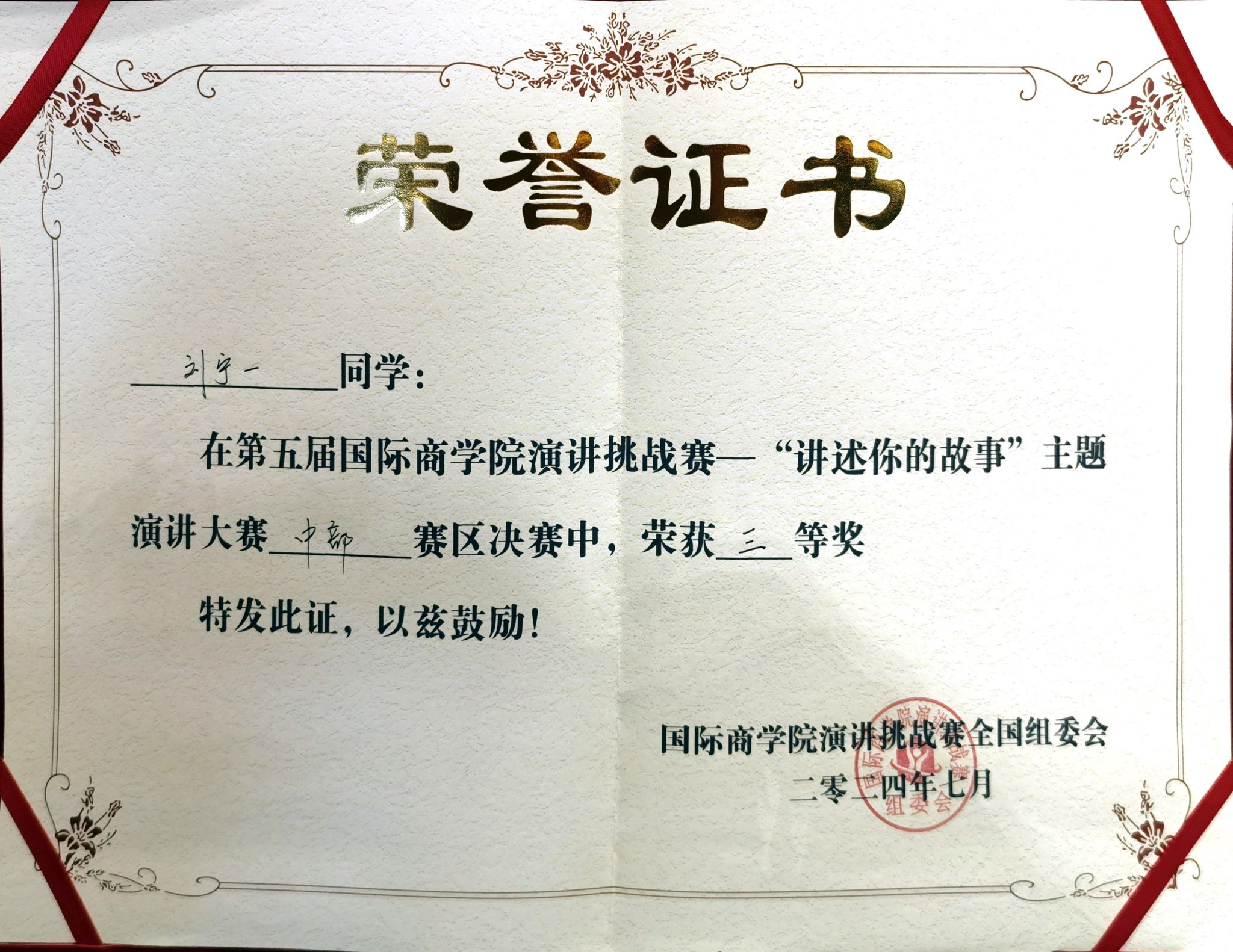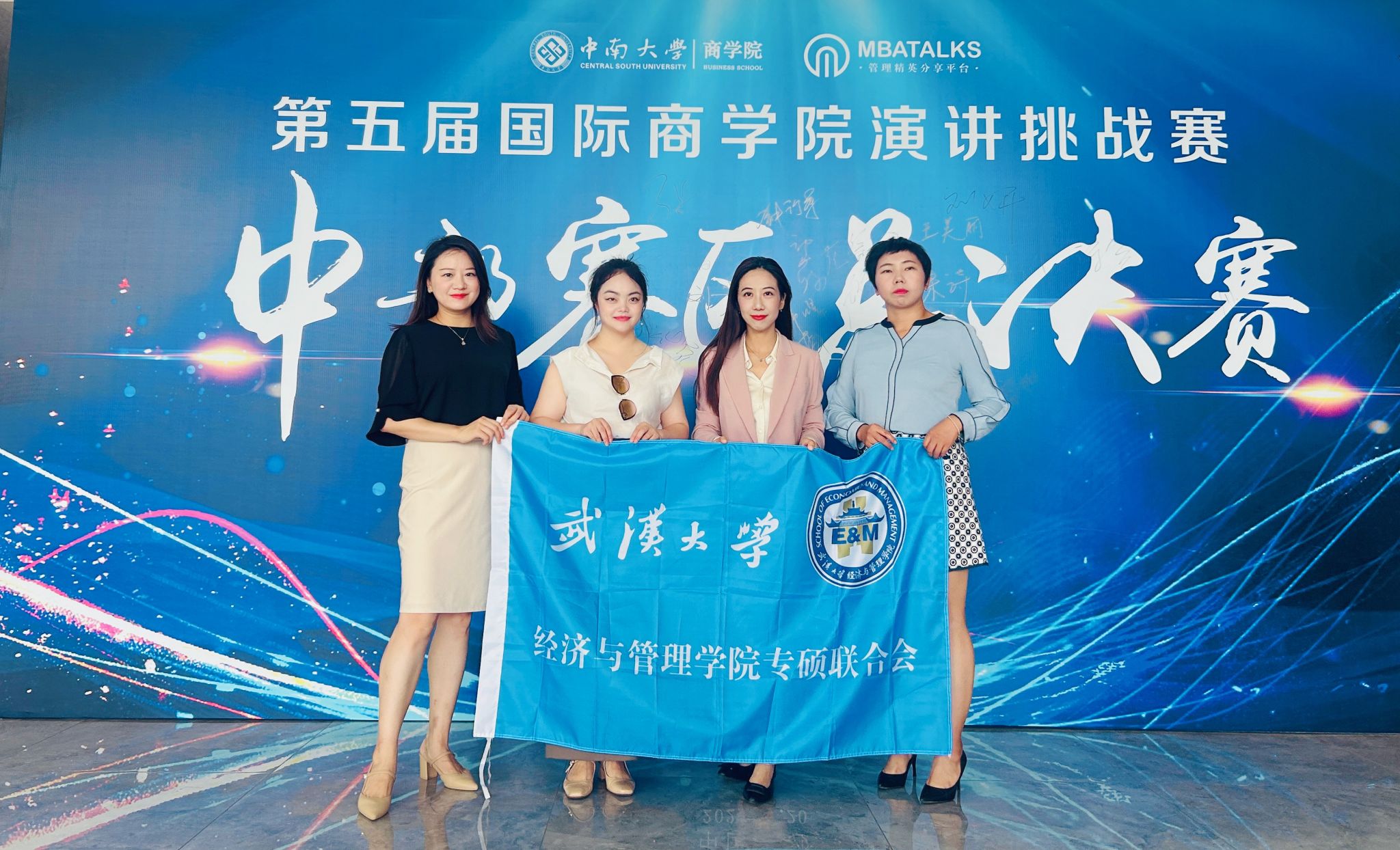 7月20日,我院专硕学子再传喜报。由专硕学联会主席2022级MBA专业刘红霞带队,2022级MBA专业张璇、2024级MBA专业吴萍、2022级EMBA专业刘宁一三位同学组成“珞珈之光”队,参加了第五届国际演讲挑战赛,荣膺中部赛区佳绩:晋级团队全国总决赛,同时,刘宁一荣获个人三等奖。创下我院参加此项赛事以来最好成绩。