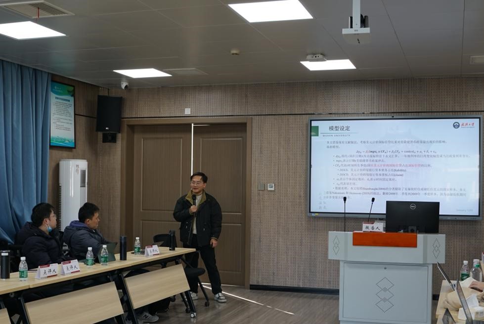 随后,2021级金融学博士生李静静分享了关于“极端气候与家庭商业保险配置策略——基于CHFS的微观证据”的报告,论文发现极端高温显著提高了家庭购买商业健康保险的概率,但由于挤出了其他商业保险的购买,导致极端气候对家庭整体的商业保险配置行为产生了微弱的负面影响,极端低温和极端强降雨对家庭商业保险参与和各类别商业保险参与均未产生显著影响。2021级金融学博士生秦力宸做了关于“金融开放对宏观经济韧性的影响——来自国际经贸协议金融规则的证据”的报告,论文发现金融开放对宏观经济韧性呈现非线性影响,随着国内制度环境的逐步完善,金融开放对宏观经济韧性的影响由负转正。伴随金融体系由要素型开放向制度型开放转型,金融开放产生正向影响所需的制度环境门槛提高,且达到门槛值后正向影响更强。2024级金融学博士生朱明杰汇报的论文题目是“融入美元体系是好是坏?——基于美联储货币政策溢出的视角”,论文研究了融入美元体系程度对美联储货币政策冲击外溢程度的影响。并且在美元计价国际信贷渠道下,美联储货币政策对国际货币经济体并无显著影响,非国际货币经济体受到影响更大。