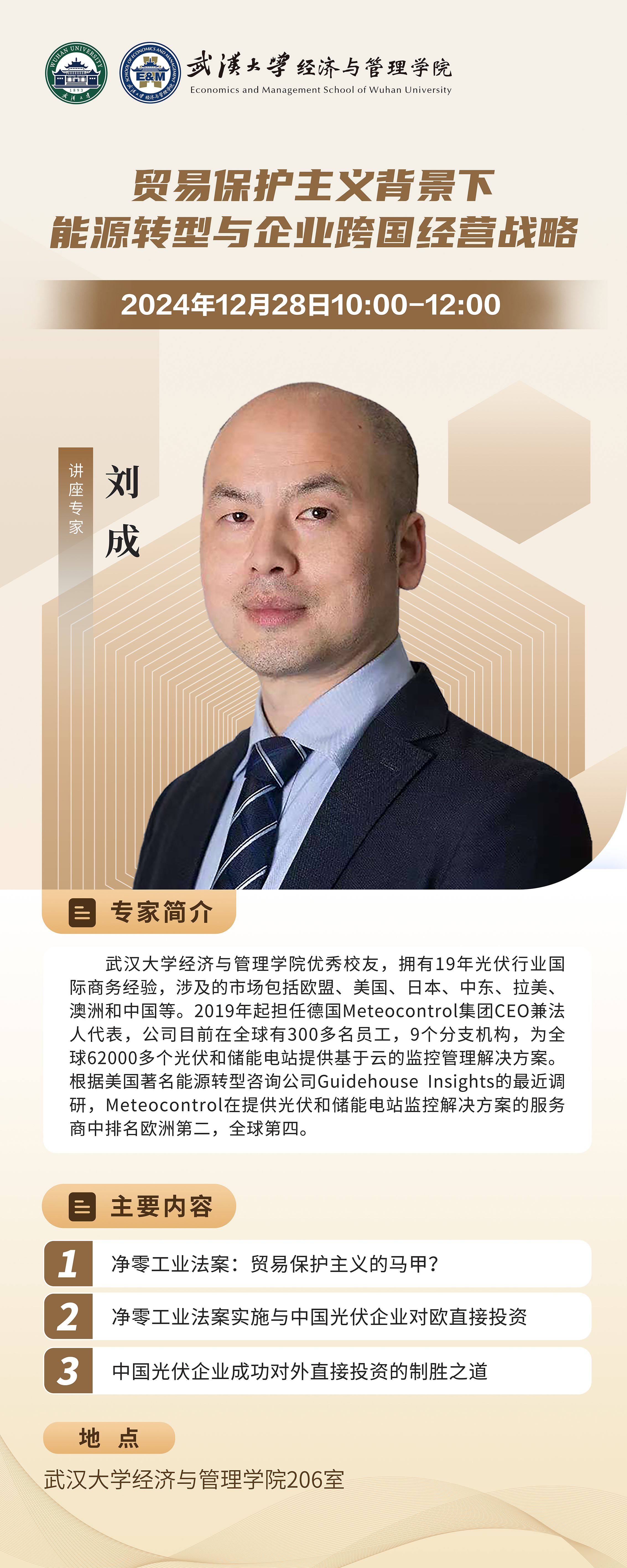 讲座预告|贸易保护主义背景下能源转型与企业跨国经营战略